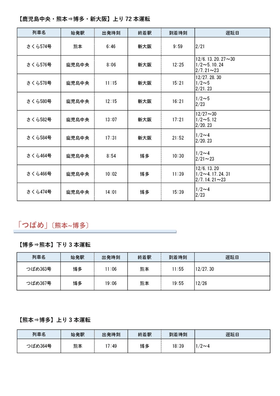 JR 九州では、お客さまのご利用が多く見込まれる冬季期間(12 月~2 月)に臨時列車(新幹線・