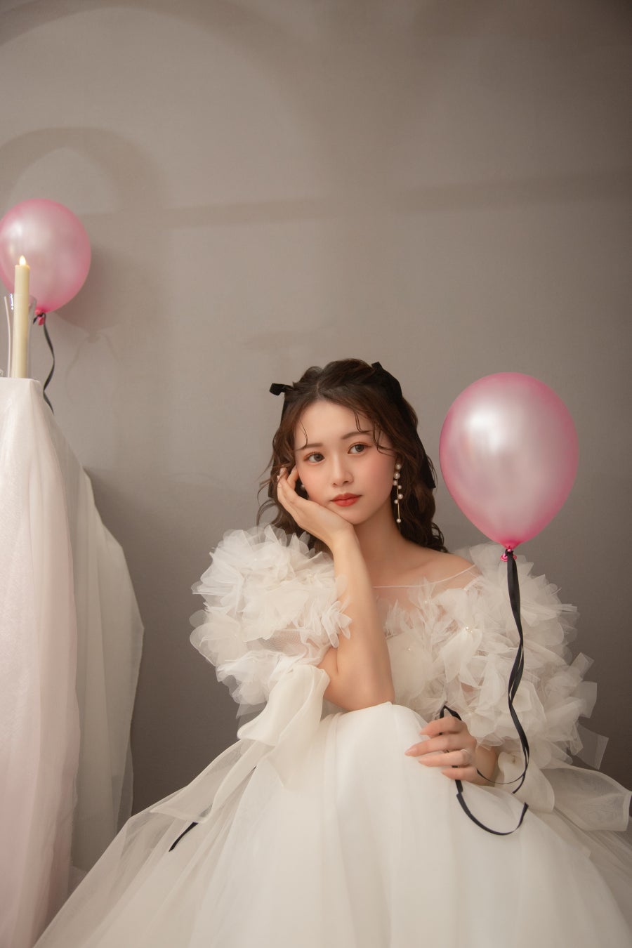 今回バイイングしたドレスはSNSでも累計3000万回再生以上視聴されており、#ふわんふわんドレスで今話題の代表作で、立体的で埋もれてしまうくらいのボリューム感がトレンドのドレス