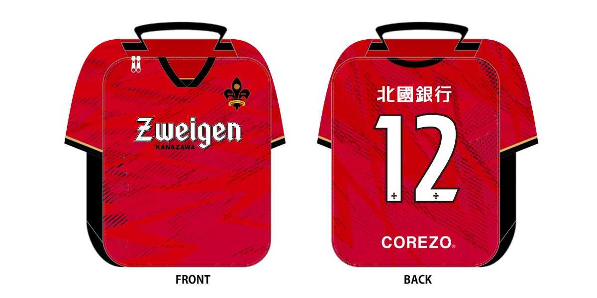 デザインは、今シーズンのツエーゲン金沢のユニフォームデザインを利用し、背面には「北國銀行」と「COREZO」のロゴマーク、そしてサポーター番号の「12」がデザインされます。
