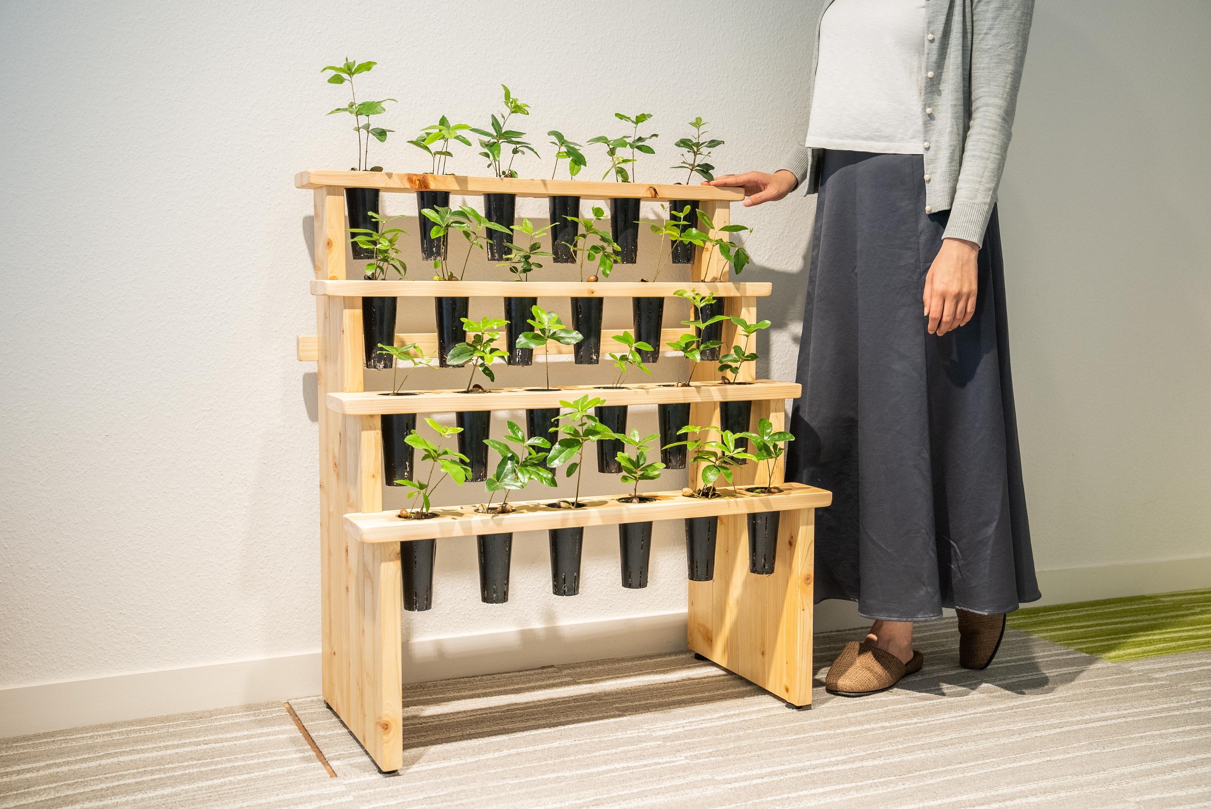 この度、株式会社ソマノベースと連携し、和歌山県内の特急くろしお停車駅(有人駅)に紀州備長炭の原木であるウバメガシの苗木(=「戻り苗」※)のラダーシェルフを設置し、数年間生育させ、熊野古道のある田辺市の森林に植林する「戻り苗」プロジェクトを実施します。