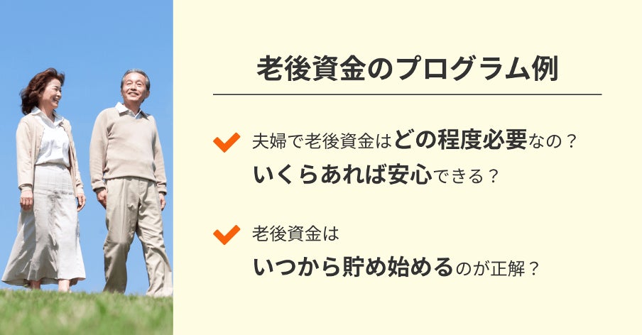 多くの年代の方からご相談を頂く機会が多い「老後資金」「教育費」「新NISA」などのテーマに対し、複数の相談プログラムをご用意しています。