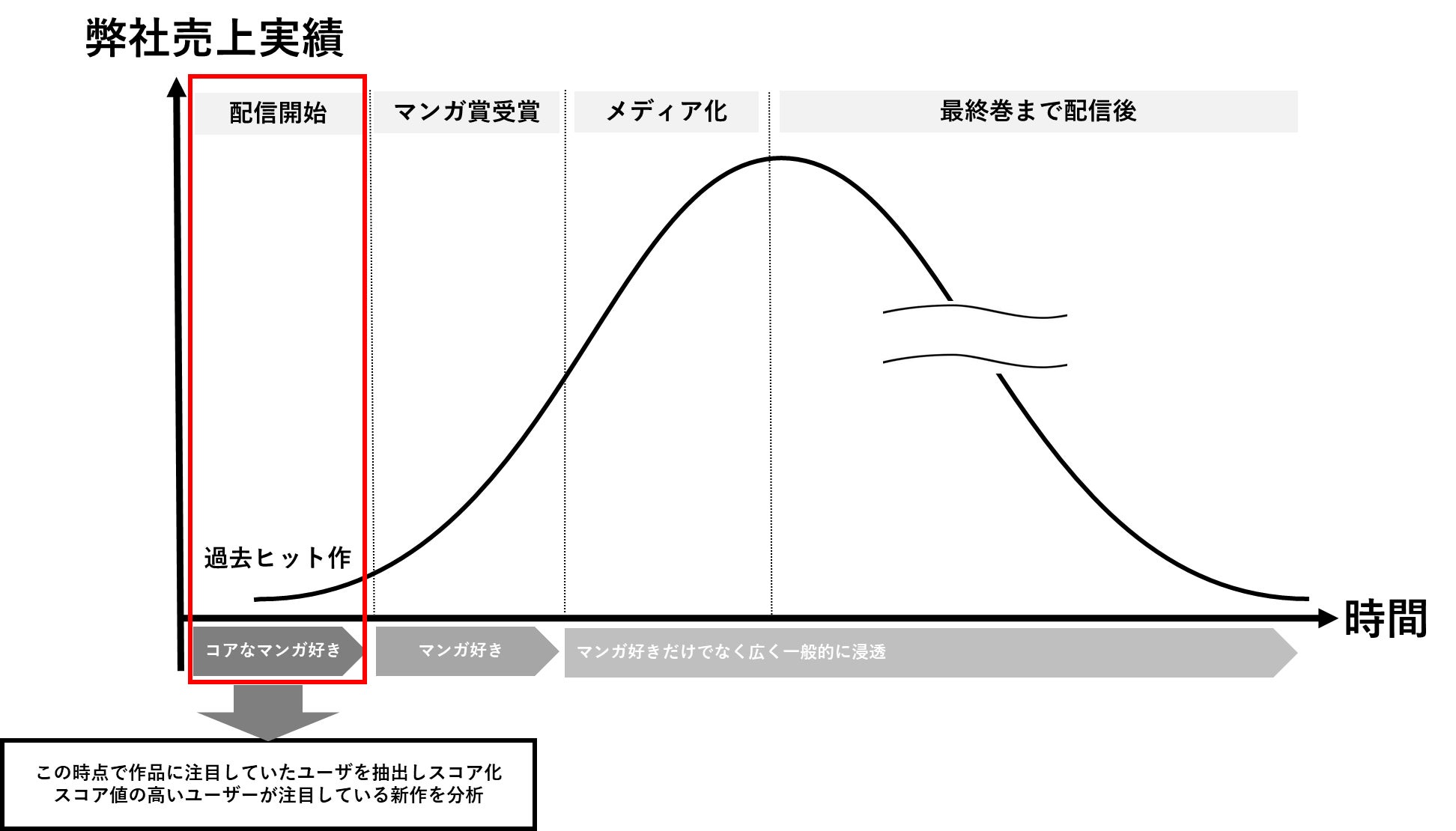 各漫画賞の受賞発表、アニメ化や映画化といったメディア化タイミングなど、作品の認知度や売上が高くなる前に、該当作品に注目していたユーザーを、ヤフー株式会社が開発した独自のロジックで抽出しスコア化。そのスコア値の高いユーザーが今注目している新作を分析しました。