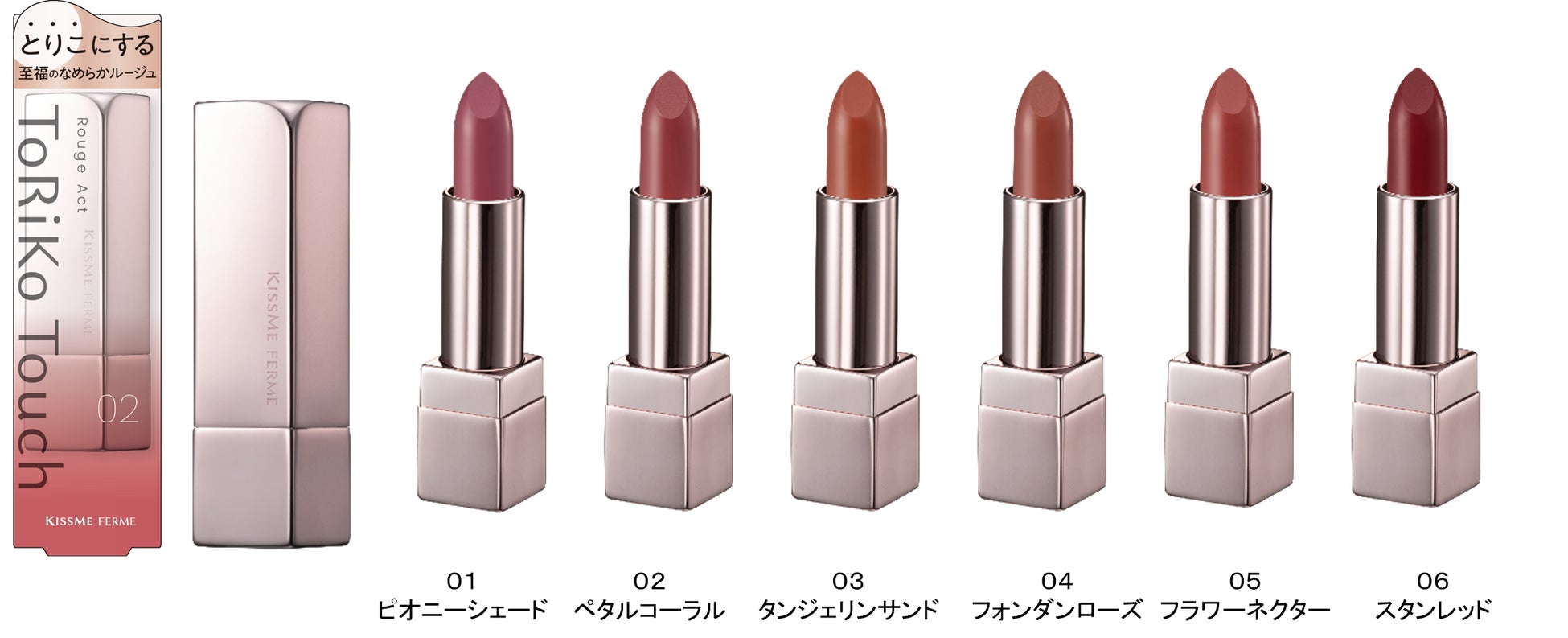 キスミー フェルムから、「紅」製造時の原料由来「ベニバナ花エキス」をはじめ8種のうるおい成分を配合した至福の塗り心地の新ルージュ「トリコタッチ」が登場。