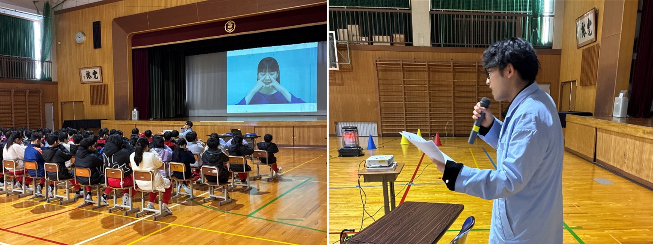 授業を実施する前に、児童の皆さんが目の健康に関する劇を披露してくださりました。劇を通して和やかな雰囲気になったところで、授業を行いました。