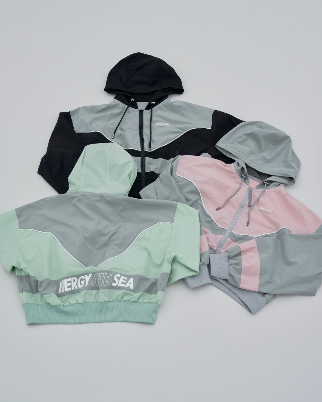 スタイリスト、フォトグラファー、ディレクターと幅広い分野で活躍する熊谷隆志氏が手掛けるブランドWIND AND SEAとの初のコラボレーションが実現しました。今回のコラボレーションでは、それぞれのブランドネームを掛け合わせたオリジナルのロゴをプリントし、NERGYならではのスポーティーなアイテムとカラーリングで仕上げました。