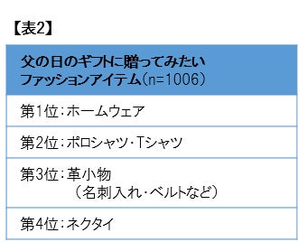 Q4:「父の日」のギフトに贈ってみたいファッションアイテムは?(n=1006)【表2】