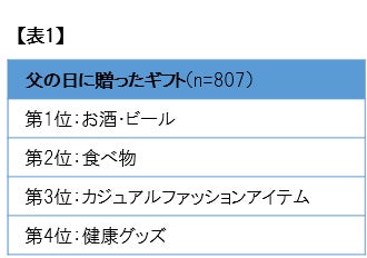 Q3:「父の日」のギフトに何を贈りましたか?(n=807)【表1】