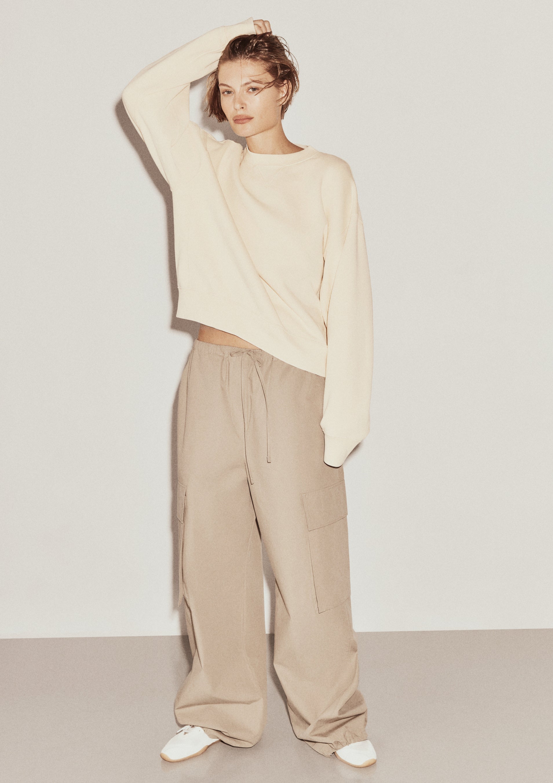 素材には、ハリのあるコットン、ウォッシュドキャンバス、シルクジャージーを使用。トーン・オン・トーンのホワイトを基調に、淡く色褪せたイエローやパウダーピンクを差し色として加え、プレイフルながらも洗練されたグレージュのカラーパレットへと自然に溶け込ませています。
