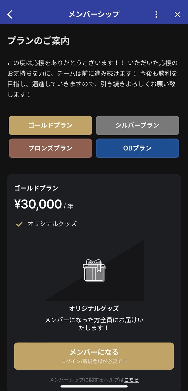 メンバーシップ機能からファンクラブ会員になって頂くと、チームから特別なグッズをお届けします!