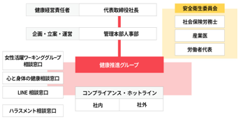 当社グループは、従業員の健康を重要な経営資源と捉え、代表取締役社長を責任者とした体制のもと、人事部の健康推進グループが中心となり、継続的な健康保持・増進施策を推進しています。