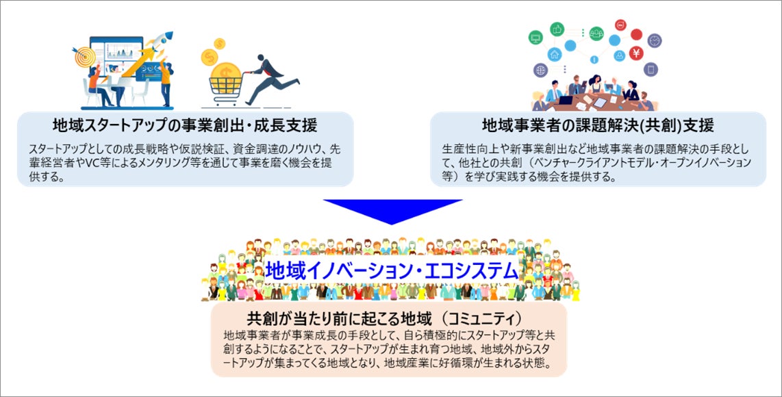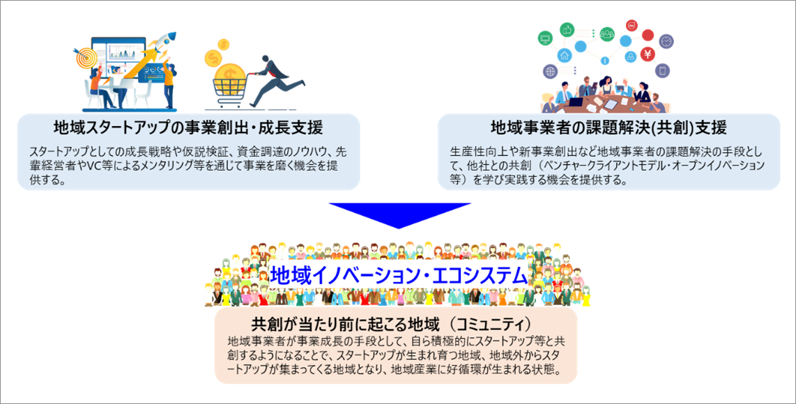 スタートアップと地域事業者等の共創による地域発のイノベーション創出に資する実績やノウハウを持つ事業者の皆様からのご応募をお待ちしております。