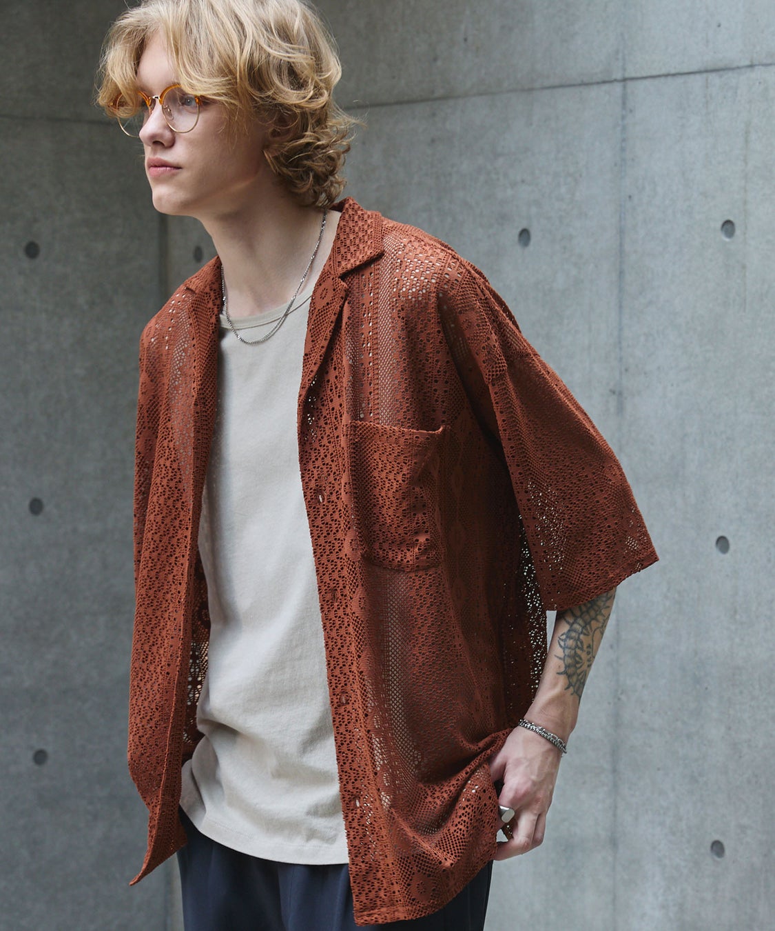レースオープンカラーシャツ