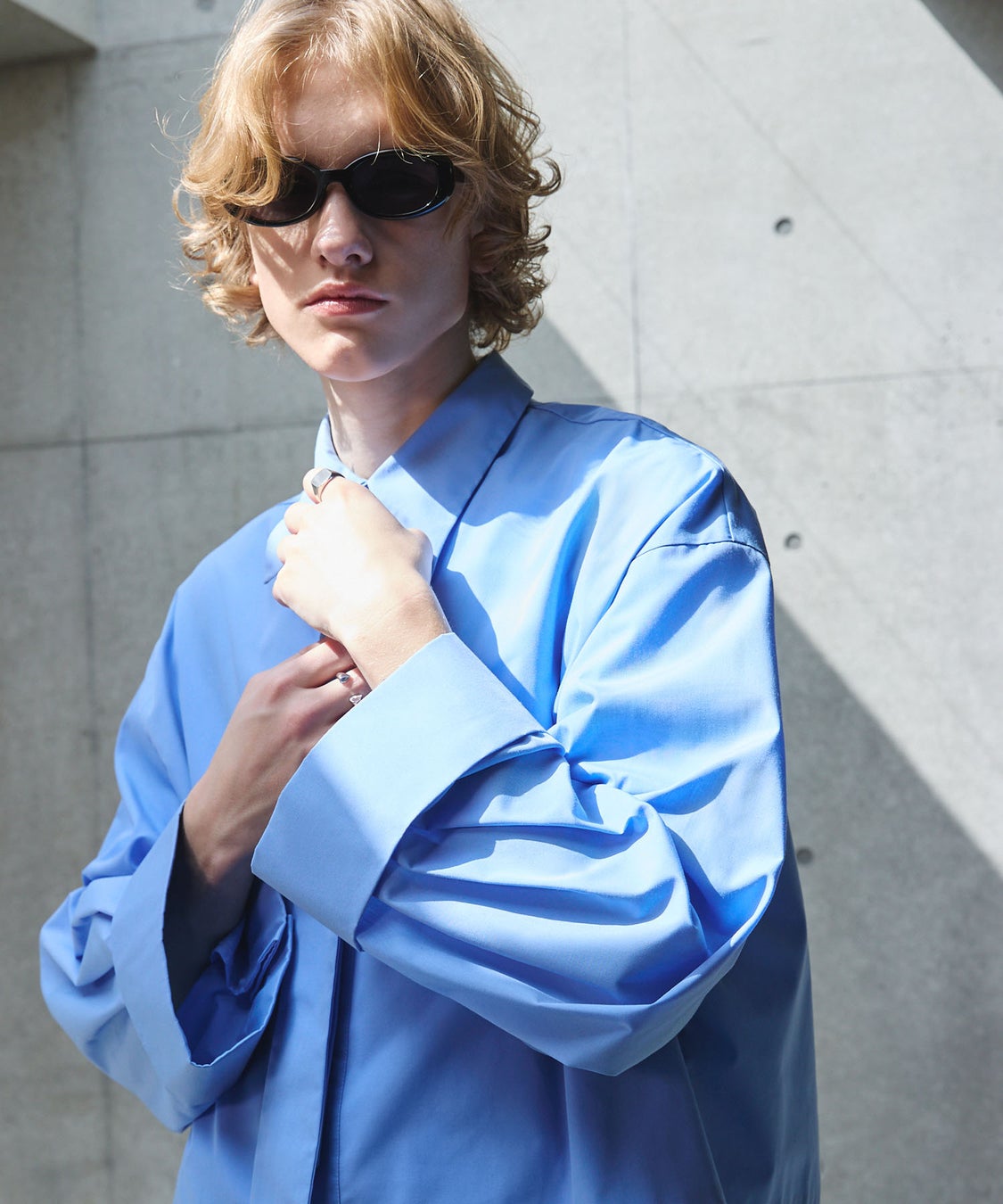 ネクタイ付きワイドスリーブショート丈シャツ