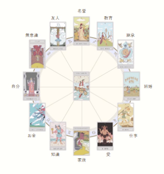 さらに、彌彌告式ホロスコープスプレッドでは、家族やお金、結婚など12のハウスに沿った運命を細かく見ていきます。 これにより、今まで気づかなかった視点や、新たな気付きを得ることができ、あなたの選択に自信を与えてくれます。