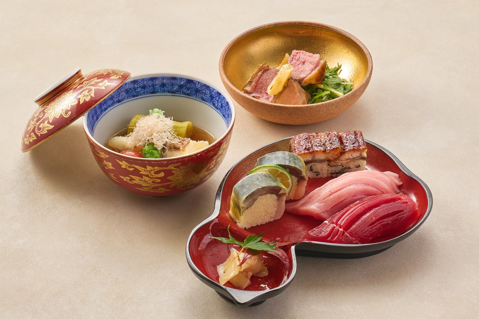 [日本] 寿司3種(国産鰻の押し寿司・鯖小袖寿司・本鮪の握り) など