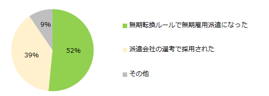 ・職場環境が変わらないことで、仕事と家庭との両立もしやすく、業務経験を活かすことができたので無期雇用派遣で継続できたのはありがたかった。(40代女性)