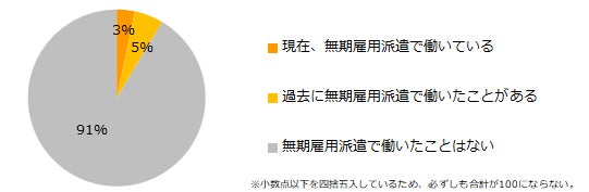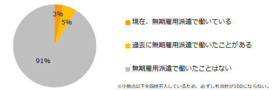 ★ 無期雇用派遣の経験者は8%。経験者の半数は「無期転換ルール」がきっかけ。経験者の6割以上が「無期雇用派遣で働いて良かった」と回答。