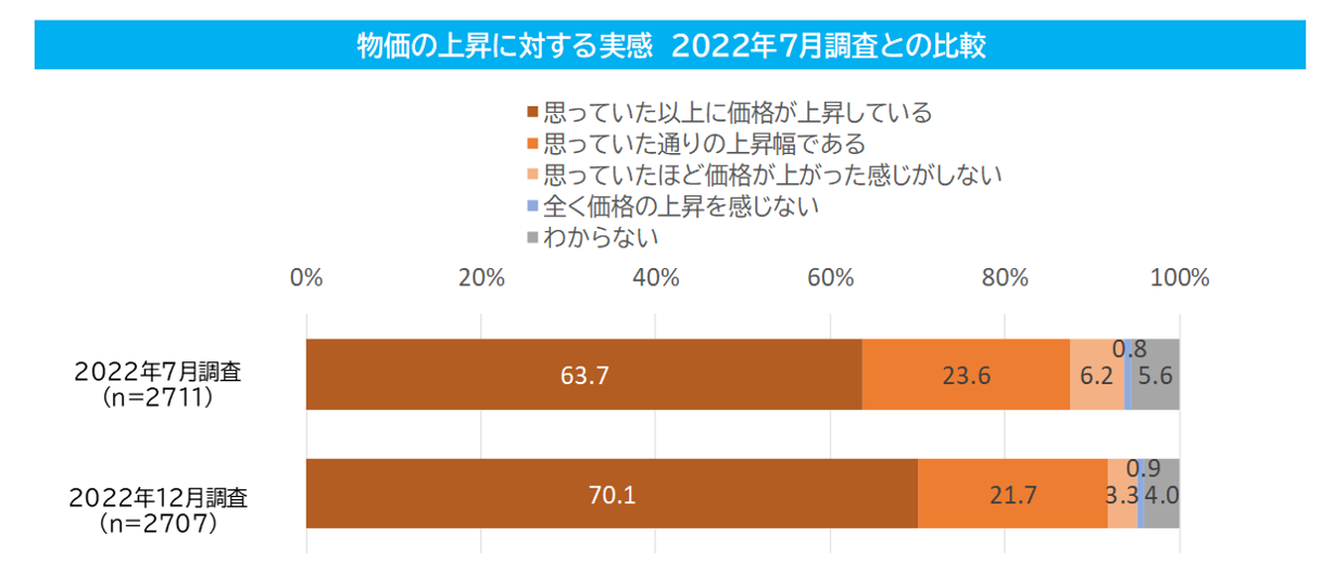 - 2022年7月調査よりも想定以上の値上げを実感する人が増加