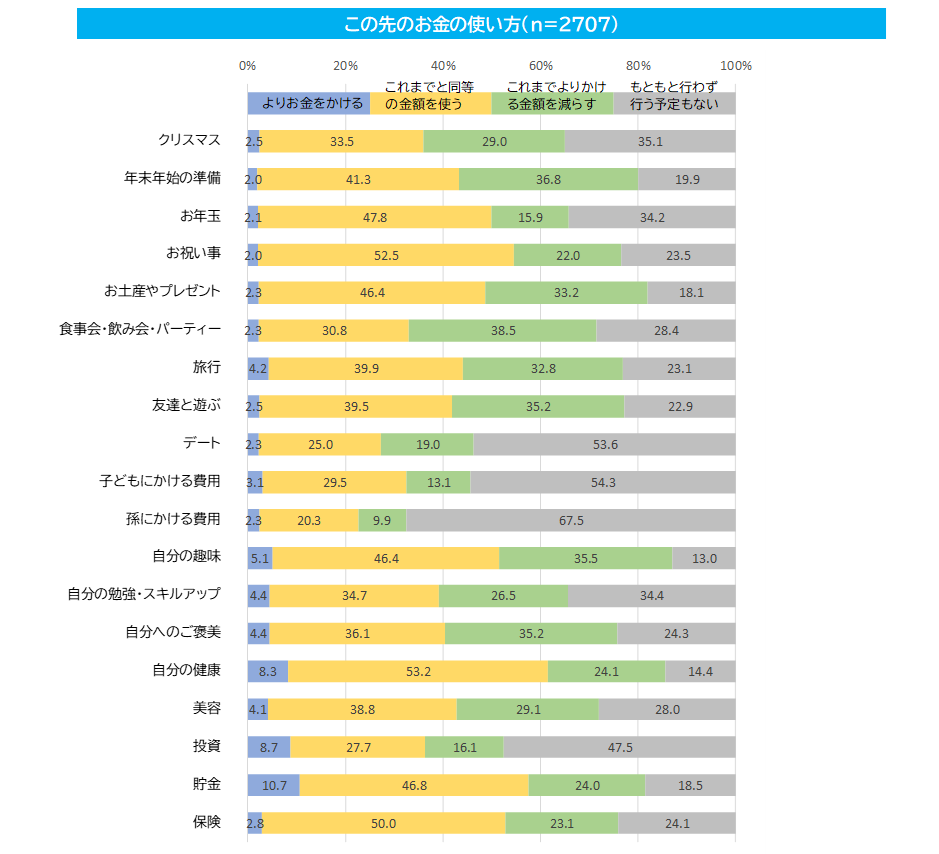 - 自分の健康とお祝い事にはこれまでと同等の金額を使う