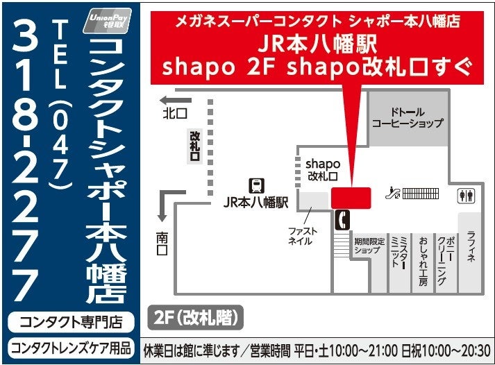 住所|千葉県市川市八幡2-17-1 JR本八幡駅Shapo改札口すぐ