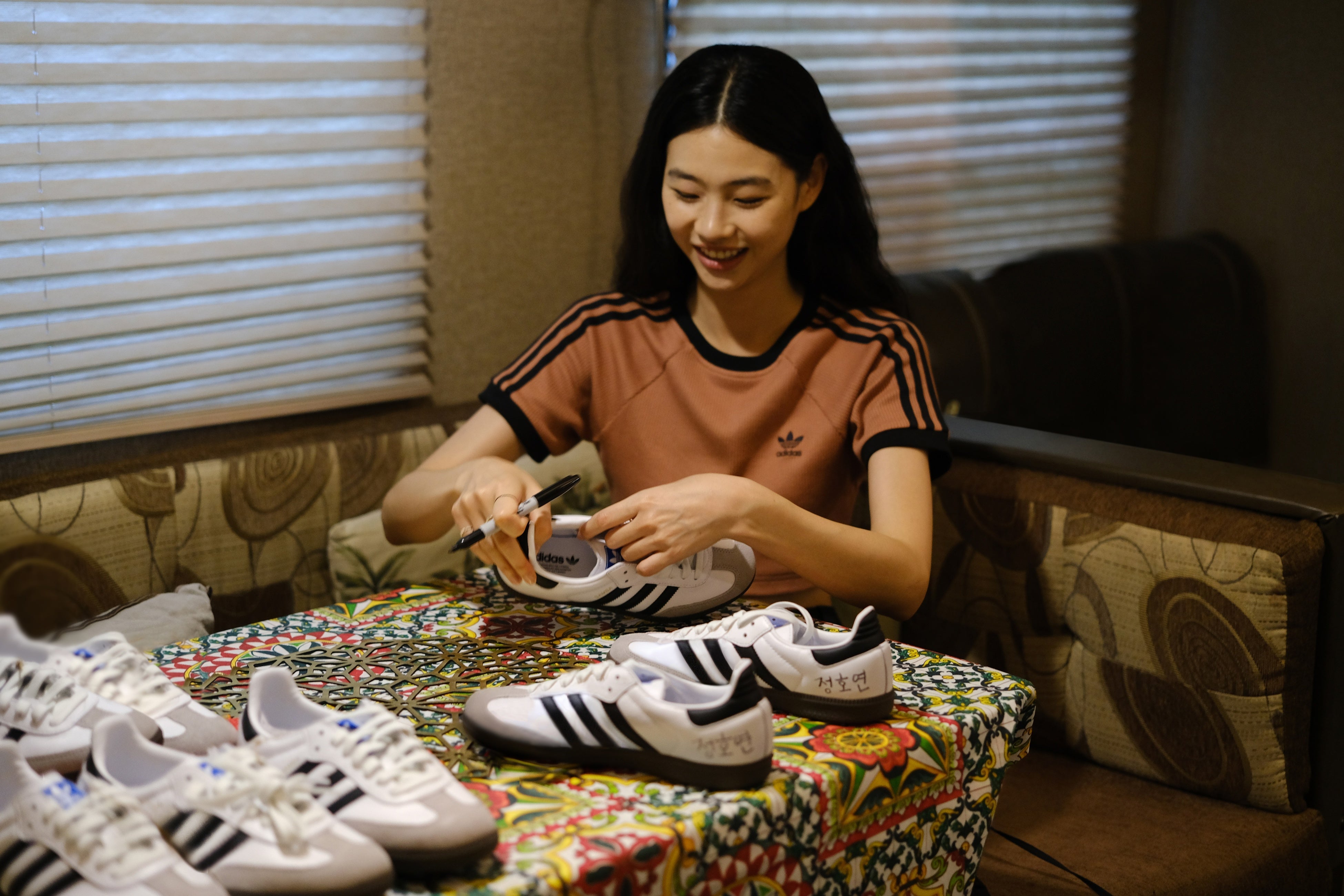 世界的ガールズグループBLACKPINKのジェニーによるサイン入りスニーカー「スーパースター」を3名様に、ドラマ・映画などで世界的に活躍する女優のチョン・ホヨンさんによるサイン入りスニーカー「サンバ」を3名様にプレゼント。