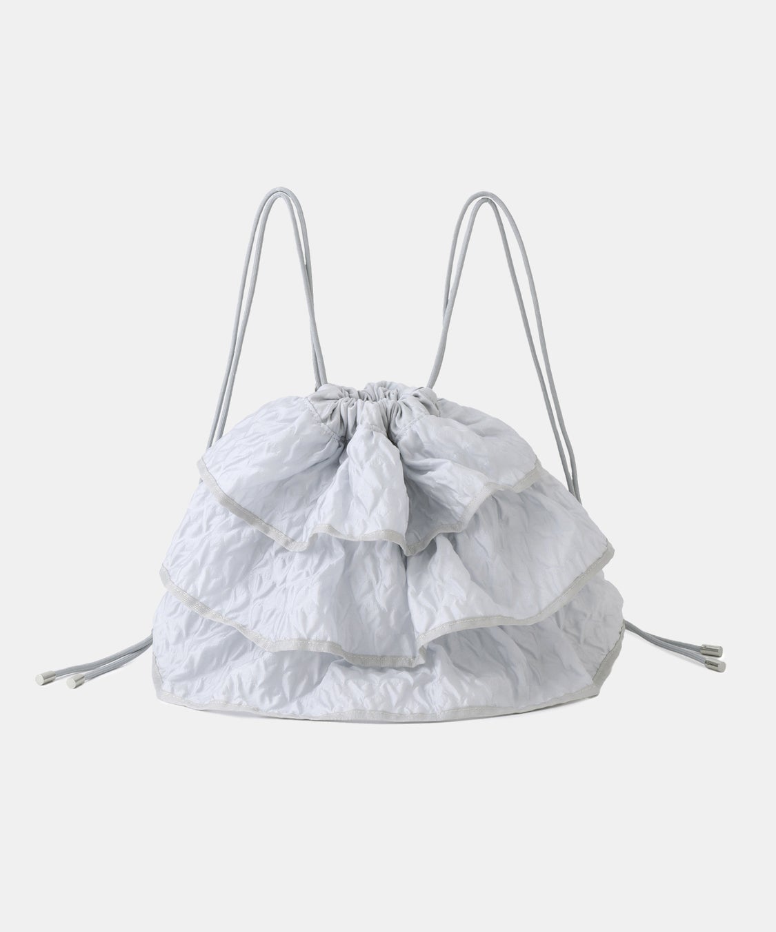 間口をコードで絞るナップサックタイプ。ティアードスカートを想わせる、とびきりキュートなフリルデザイン。