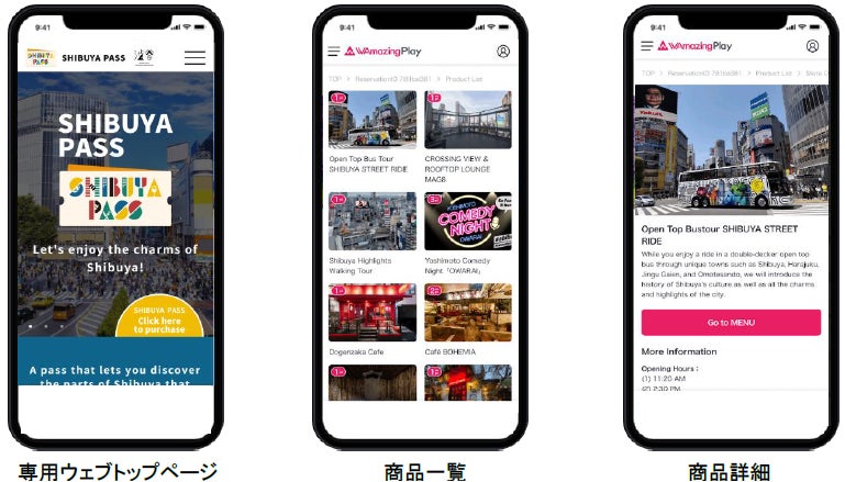 本周遊パスは、WAmazingの運営する専用ウェブサイトにおいて、訪日外国人旅行者が体験・サービスと引き換えられるポイントを事前購入し、参画施設・店舗にて現地スタッフに画面を見せるだけで、キャッシュレス・チケットレスで利用できるサービスです。通常よりお得に体験・サービスを利用できるほか、ポイント制を導入することにより、異なる価格やジャンルの体験・サービスでも好きな組み合わせで自由に使えるため、初めて渋谷を訪れる訪日外国人旅行者にとって安心・便利に利用していただけます。