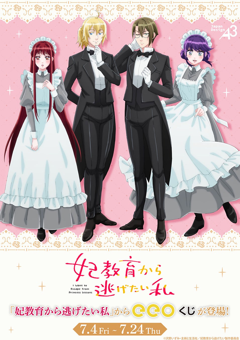 TVアニメ『妃教育から逃げたい私』オンラインくじ「eeoくじ」が発売! レティシアやクラークたちがメイド服&執事服に着替えた描き下ろしイラストが登場