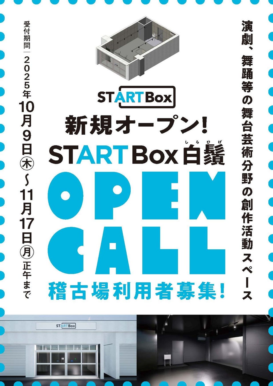 この度、 START Box ササハタハツ・お台場に続き、墨田区堤通二丁目の都営白鬚東アパートに「START Box 白鬚」を新規開設します。アトリエに加え、新たに舞台芸術活動を行う方への稽古場も整備しました。これらの施設を利用するアーティストの募集を開始しますので、ぜひご応募ください。