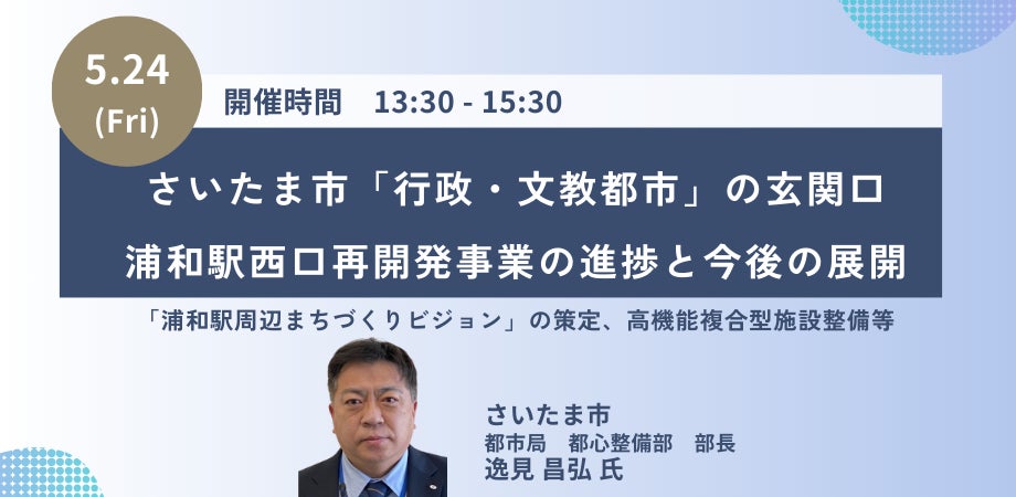 【JPIセミナー】さいたま市「”行政・文教都市”の玄関口、JR浦和駅西口再開発事業の進捗と今後の展開」5月24日(金)開催