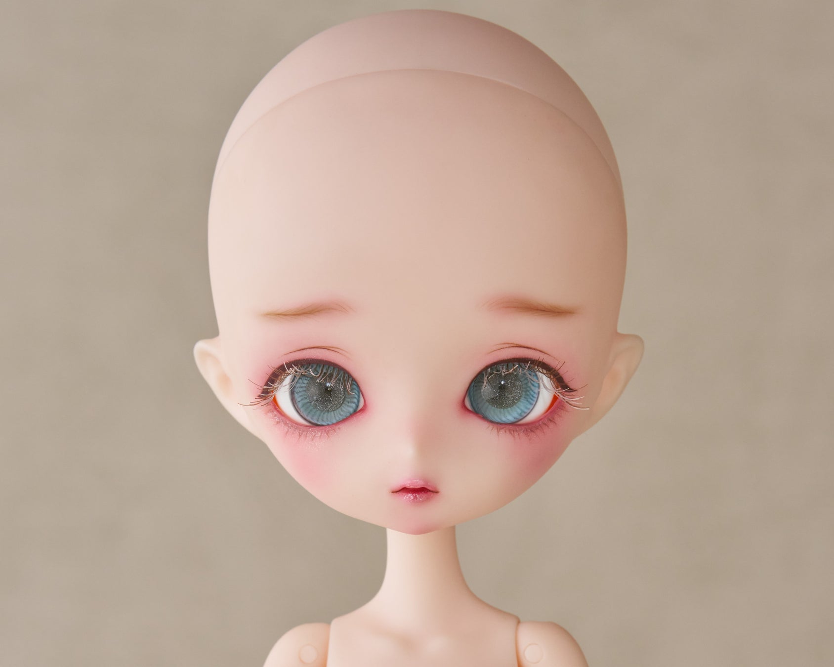 彩色済みドール本体、グラスアイ、ウィッグ