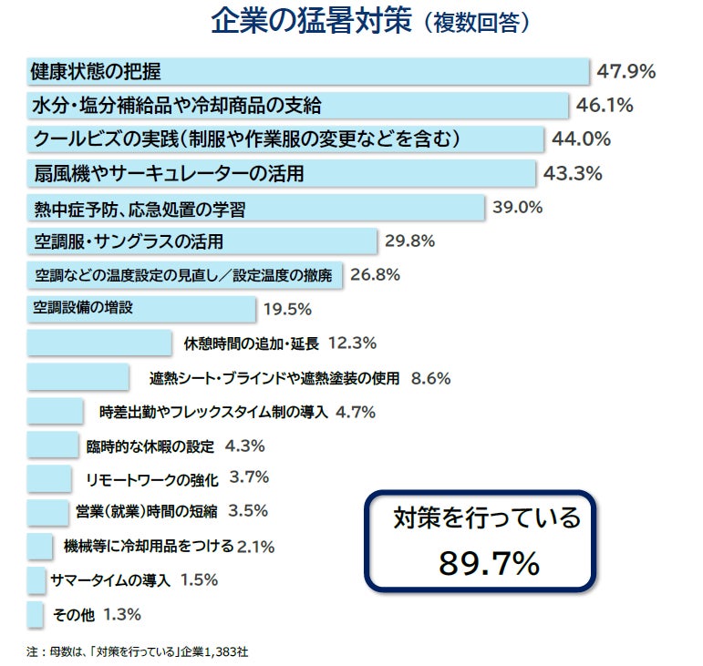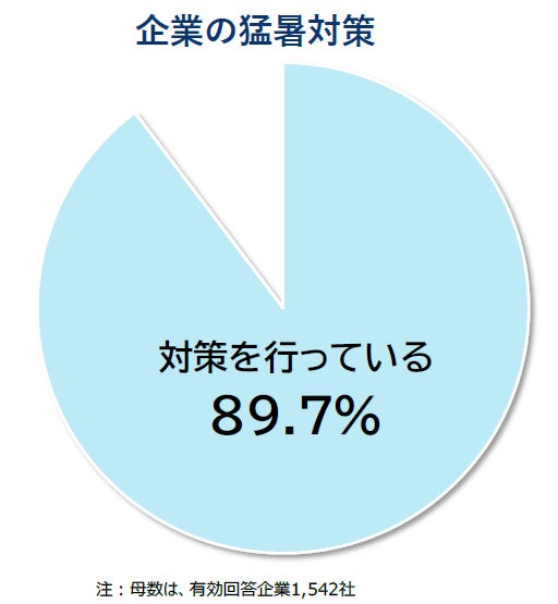 企業の約9割が猛暑対策を実施。暑さ対策グッズの支給やクールビズ、設備・備品の充実も上位に
