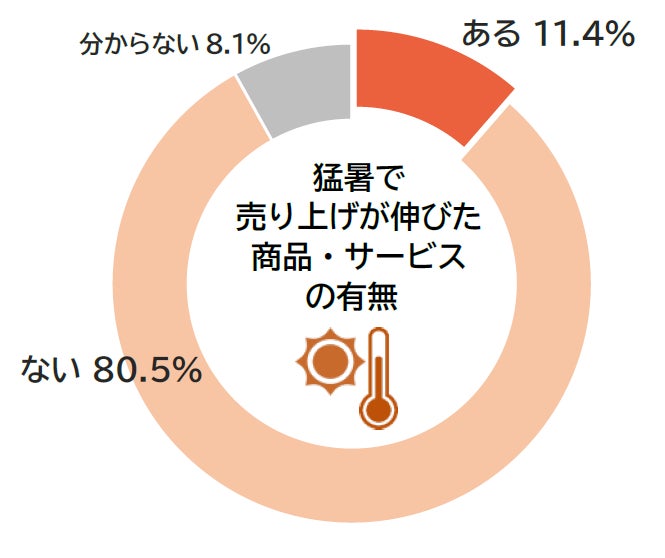 自社が手がける商品・サービスのなかで、2024年の猛暑をきっかけに売り上げが伸びたものはあるか尋ねたところ、「ある」が11.4%で、「ない」が80.5%となった。