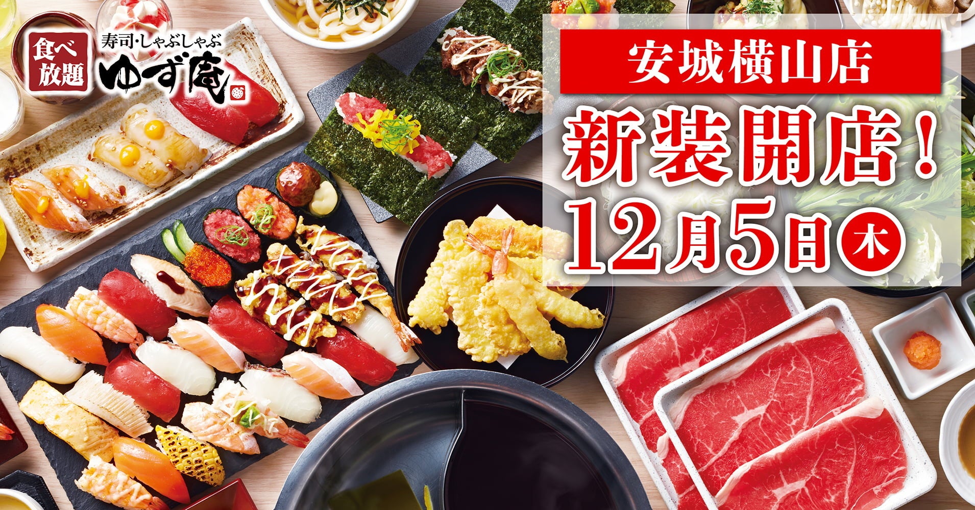 【ゆず庵】『寿司・しゃぶしゃぶ ゆず庵 安城横山店』が2024年12月5日(木)に新装開店!