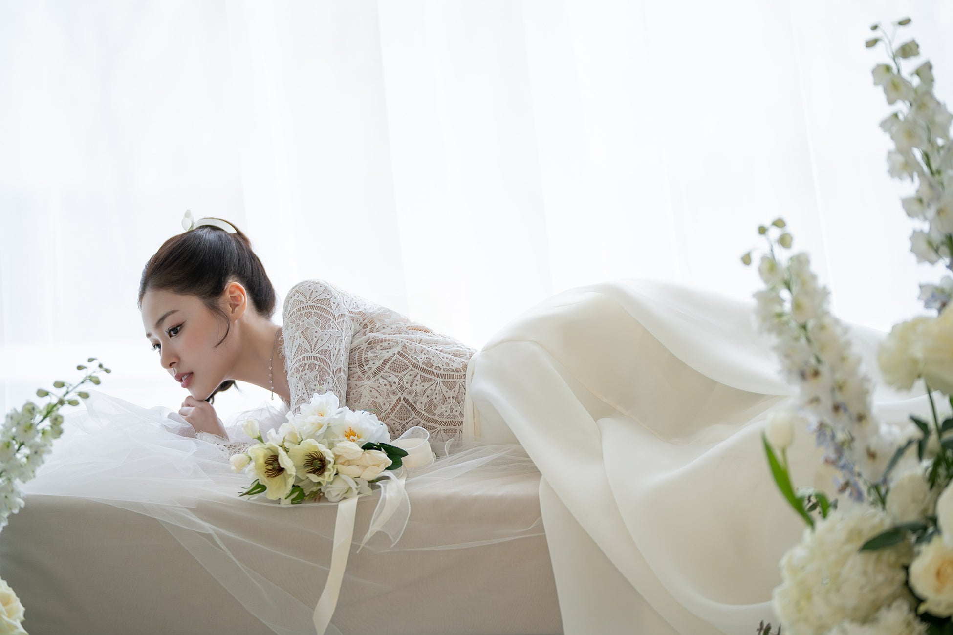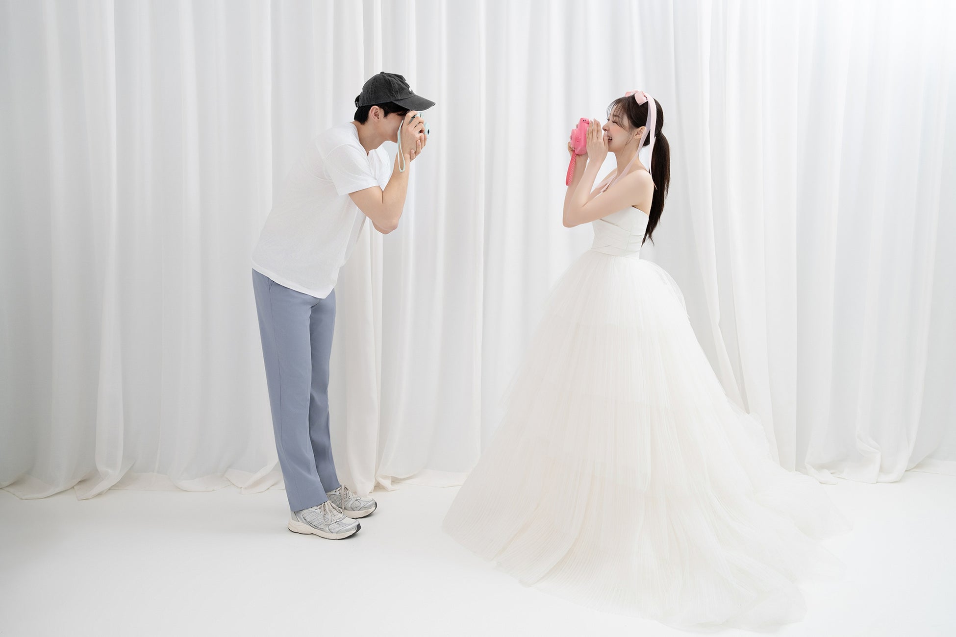 本場韓国のディレクションチームが監修した、洗練された時間と空間で描く、唯一無二のウエディングストーリー。アジアにおけるウエディングビジネスの専門グループ「WEDDINGBOOK」が、その知見とインスピレーションのすべてを結集。クリエイティブディレクターDongji Kang(ドンジ・カン)氏の指揮のもと、光の入り方まで緻密に計算したスタジオ空間で、お二人の美しさと魅力を引き出す撮影を。