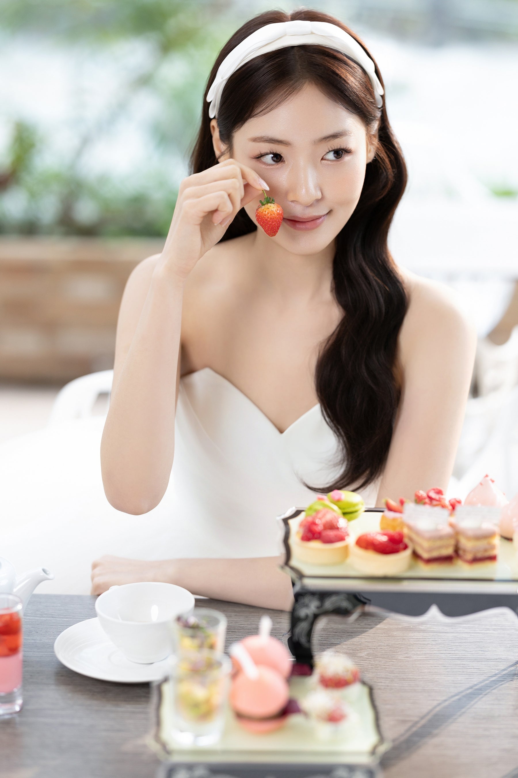 自分史上最高の美しさと透明肌を叶える韓国メイク、最旬トレンドを反映したドレスや小物のスタイリング。