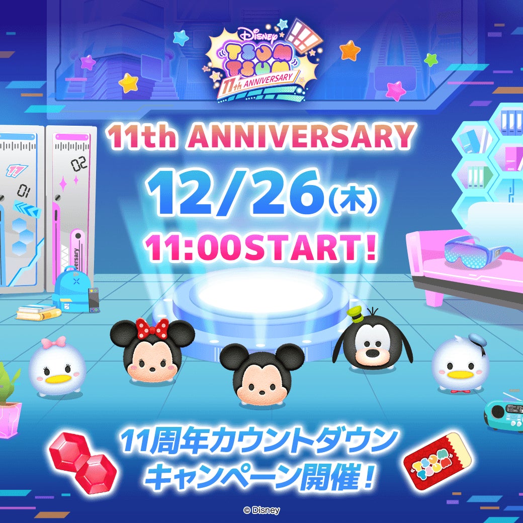 LINEヤフー株式会社が運営するカジュアルパズルゲーム『LINE:ディズニー ツムツム』(iPhone・Android対応/無料)において、本日より、ツムツム11周年カウントダウンキャンペーンを開催します。