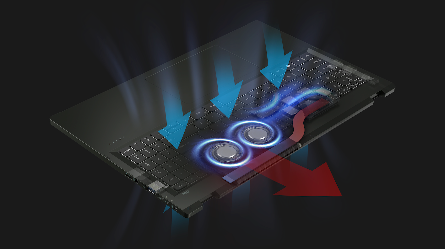 さらに本製品群にはAcer独自の冷却システム Acer TwinAirを搭載。システム使用モードをサポートするデュアルファンにより高い冷却性能を実現しました。最適な場所に設置された2つのファンで効率的にパソコン内を冷却。冷却モードは、Fn+Fのショートカットキーからサイレント、ノーマル、パフォーマンスの3つに切り替えることができます。