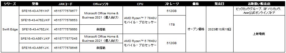 製品情報シリーズページ:https://www.acer.com/jp-ja/laptops/swift/swift-edge