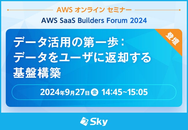 Sky株式会社は、9月27日(金)に アマゾン ウェブ サービス ジャパン が主催するオンラインセミナー「AWS SaaS Builders Forum 2024」に登壇いたします。