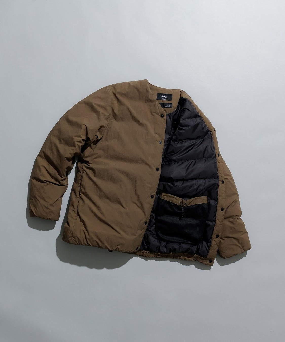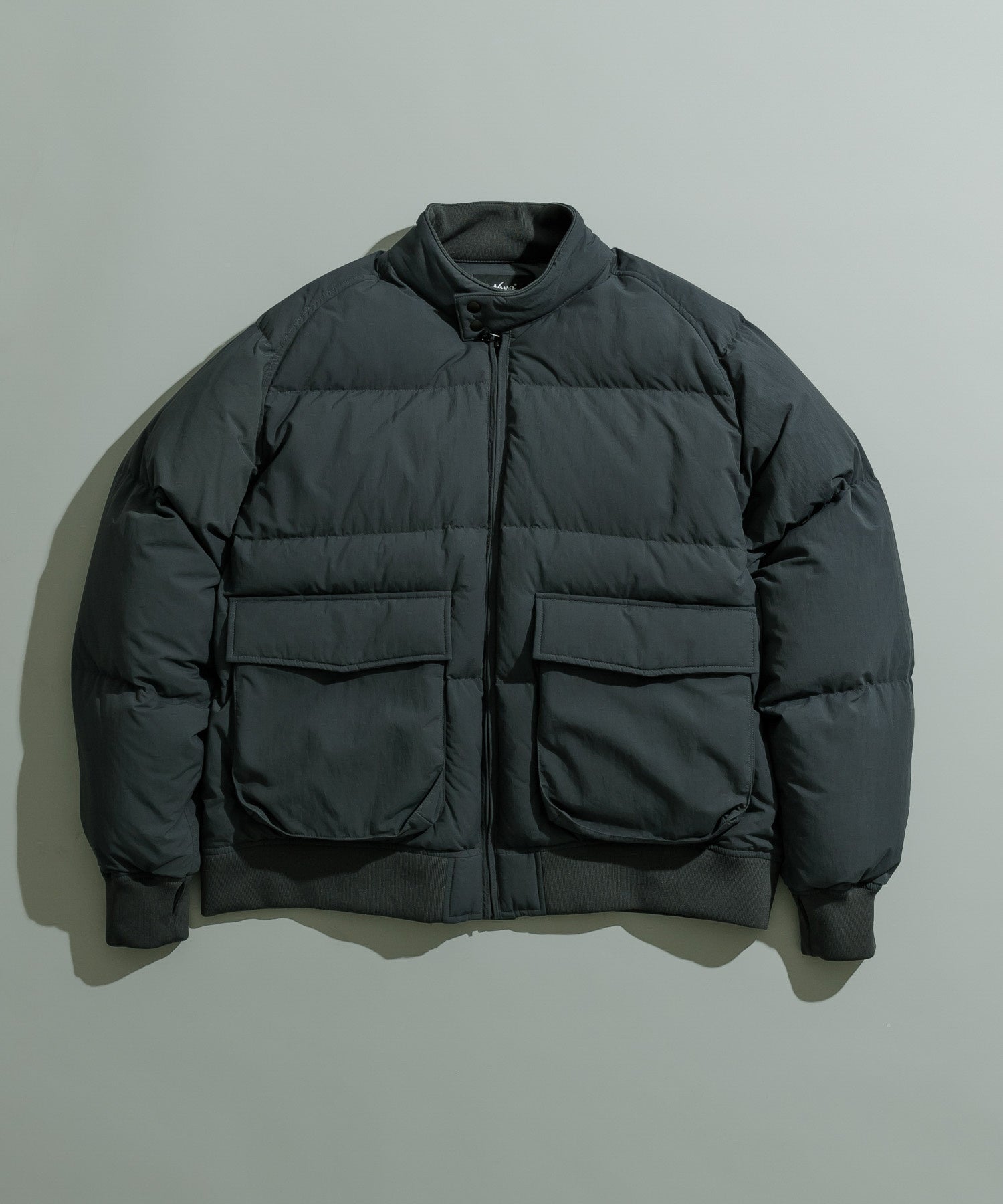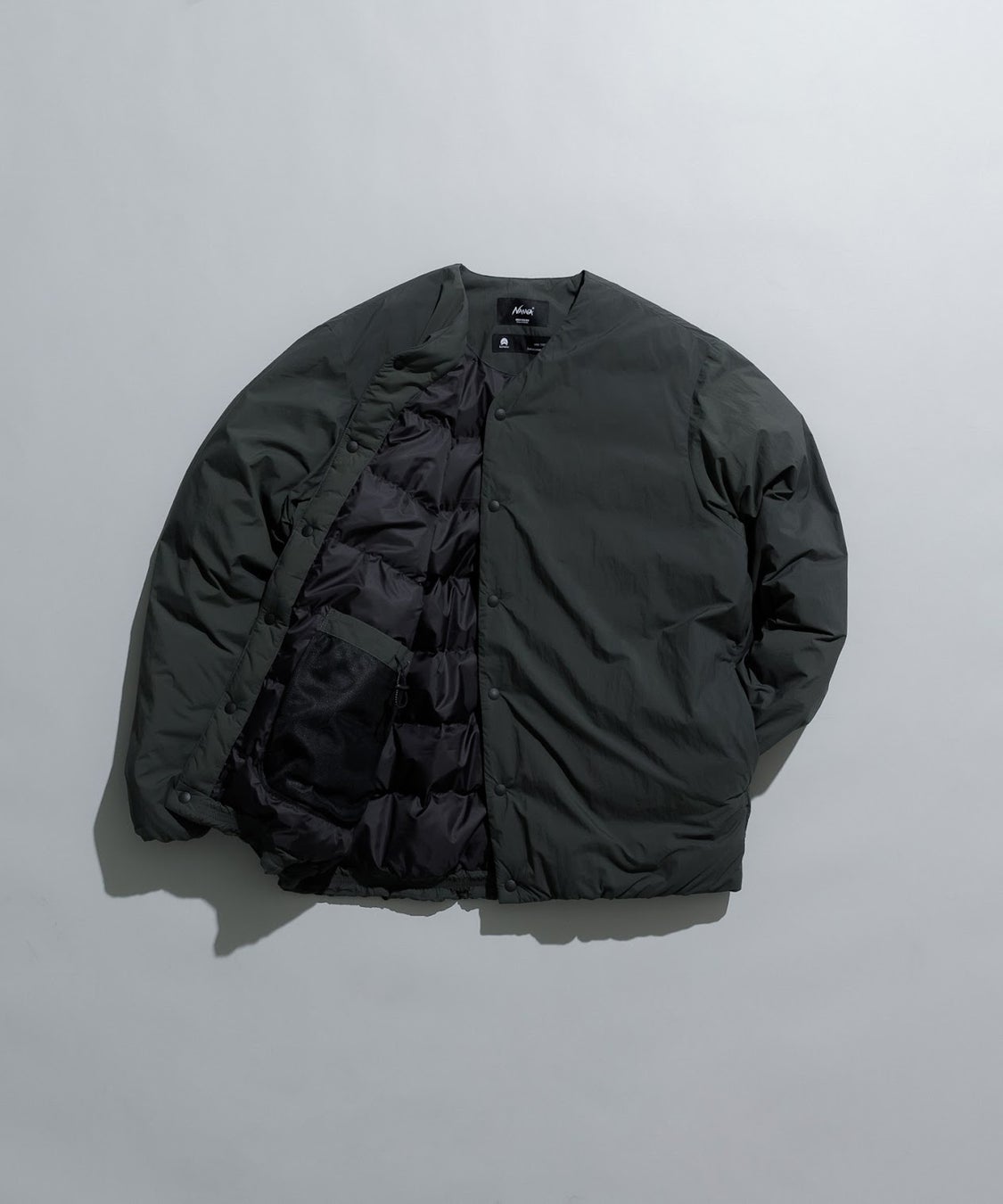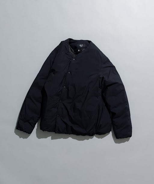 小松マテーレのファブリックを使用したミニマムなノーカラーダウンブルゾンが登場。