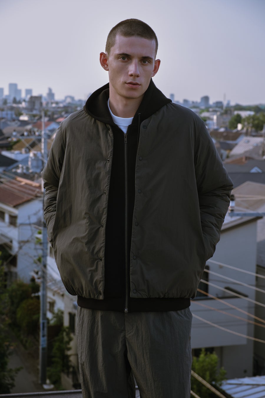 今回は定番のダウンブルゾンに加え、化学素材メーカー・小松マテーレのファブリックを使用した新型のダウンジャケットと、ノーカラーブルゾンの2型も発売します。