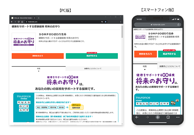 保険選びサイト「保険市場」に掲載を開始したSOMPOひまわり生命の『健康をサポートする変額保険 将来のお守り』は、対面販売でお申し込みいただける保険商品です。「保険市場」PCサイトおよびスマートフォンサイトにて、商品の詳細をご確認いただけます。