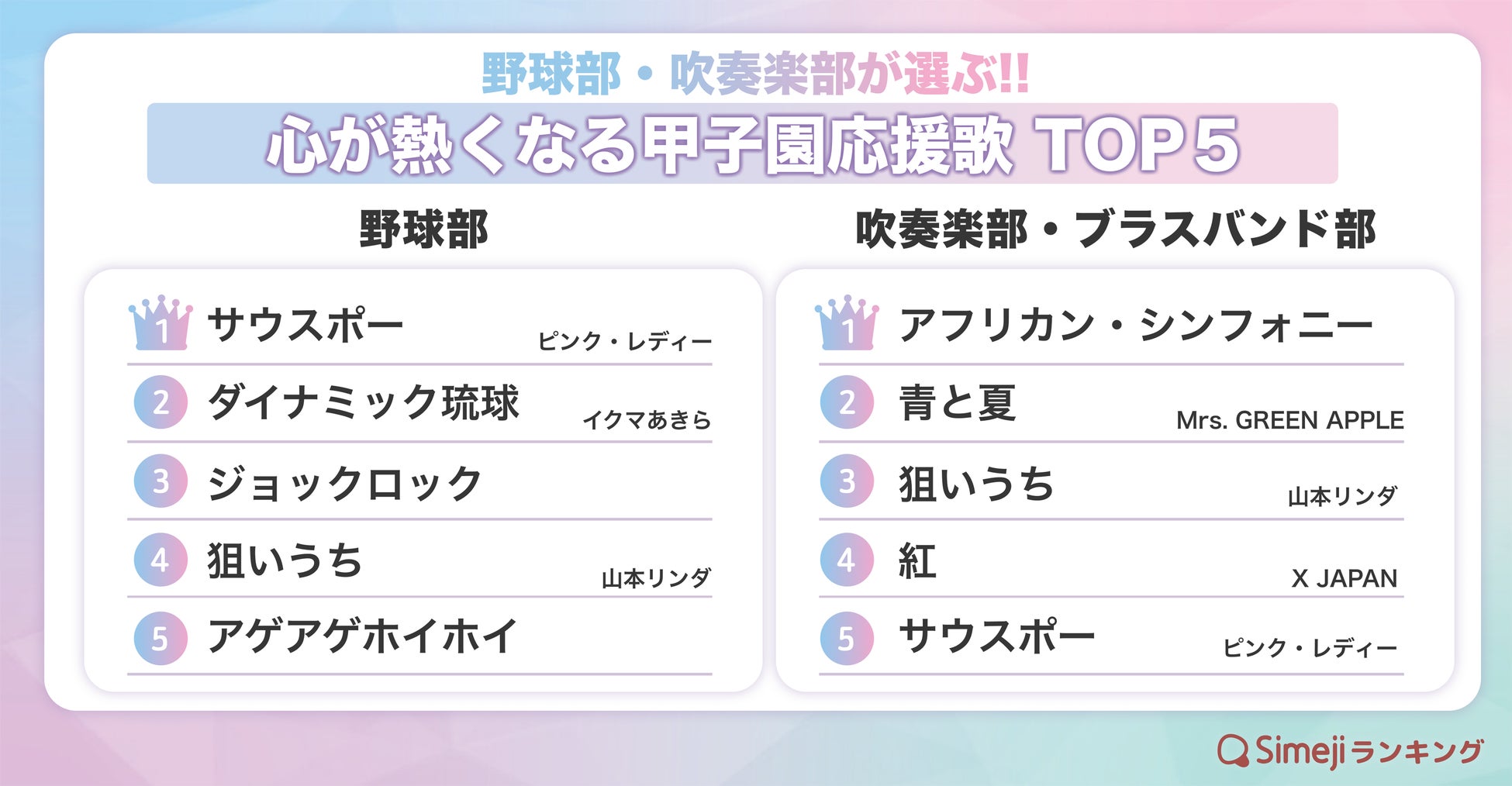 【Simejiランキング】Z世代が選ぶ!!「心が熱くなる甲子園テーマソングTOP10&応援歌TOP5」