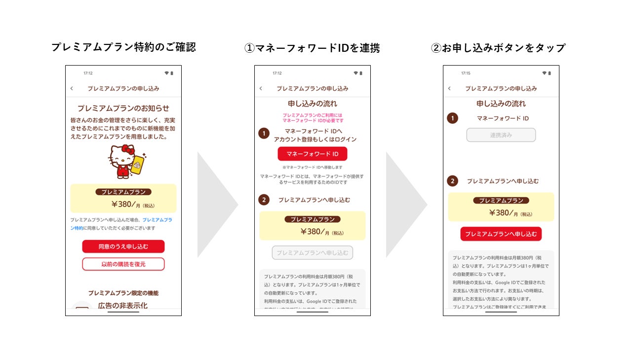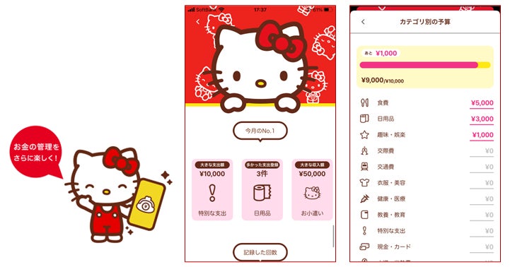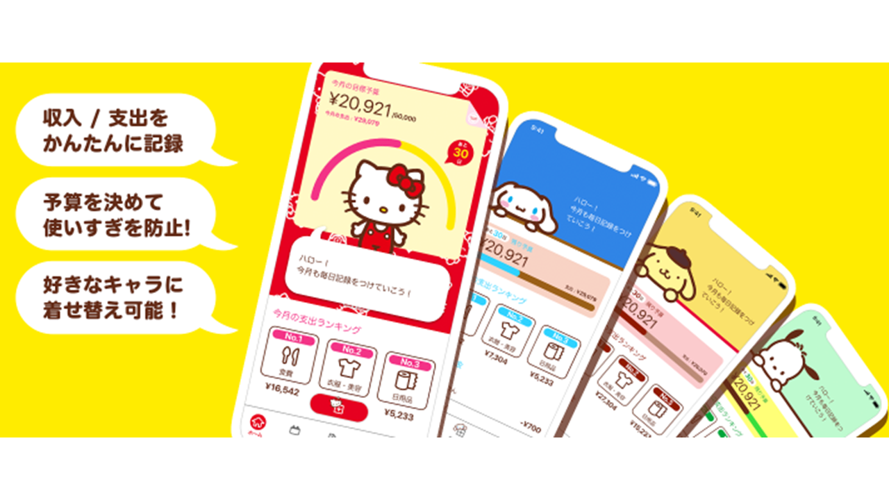 株式会社マネーフォワードは、『かんたん家計簿 with サンリオキャラクターズ』において、新たに月額式のプレミアムプランを提供開始します。これまでの機能に加えて、プレミアムプランでは、特別な着せ替えモードが選択可能になるほか、支出カテゴリ(以下「カテゴリ」)毎の予算設定機能、毎月の家計状況をより詳しく振り返る「あなたの記録」などにより、詳細な家計管理に繋げていただけます。