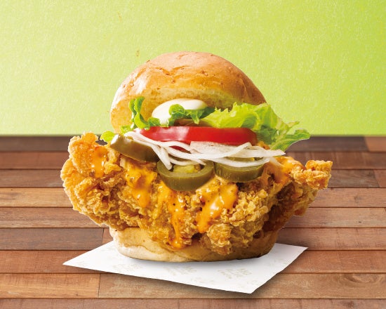 『ワイルドチキンバーガー』は食べ応えのある鶏モモ肉を、『オリーブチキンカフェ』の独自製法をそのままに仕上げた重量級オリジナルフライドチキンに仕立て、フレッシュ野菜とともに全粒粉バンズに挟み込みました。ソースはガッツリチキンの味に負けない『ハニーマスタード』と『マーラーホットマヨ』の2種類をご用意。従来の『オリーブチキンカフェ』とは一味違った、新体験の味をお届けします。