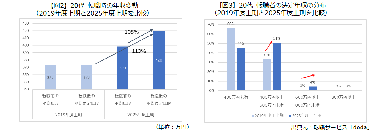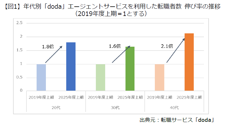 転職サービス「doda」、2025年度上期版「年代別 転職時の年収変動レポート」を発表