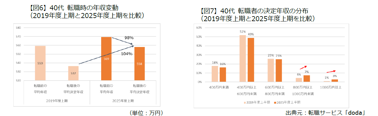 対象:2019年度上期(2019年4月~9月)と2025年度上期(2025年4月~9月)にdodaエージェントサービスを利用して転職した個人