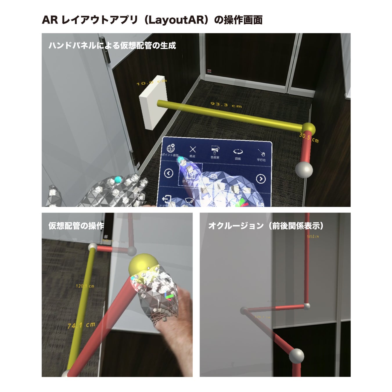 現場にて、空間を認識したうえで、配管や設備等のレイアウト検討ができるアプリです。手間のかかる現場確認を効率化するだけでなく、結果を3D-CADと連携することができるため、現場確認後のオフィス業務まで効率化することが可能!