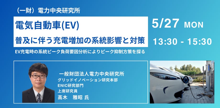 【JPIセミナー】(一財)電力中央研究所 「電気自動車(EV)普及に伴う充電増加の系統影響と対策」5月27日(月)開催